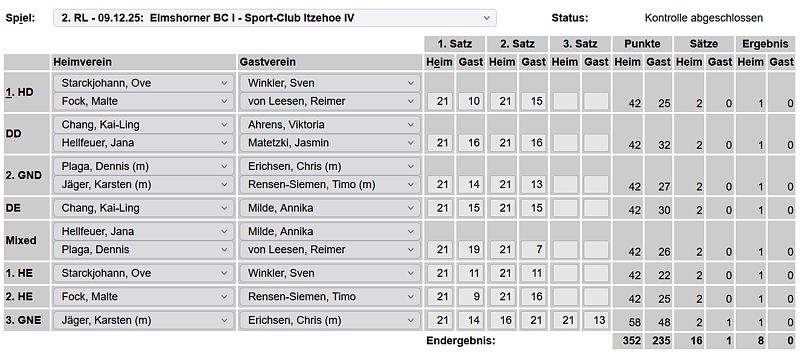 | Bericht im sh:z über den Auswärtssieg unserer ersten Mannschaft bei der SG TSV Kronshagen / Kieler BC und der Heimschlappe unserer zweiten Mannschaft gegen das Landesligateam von BW Wittorf. |
